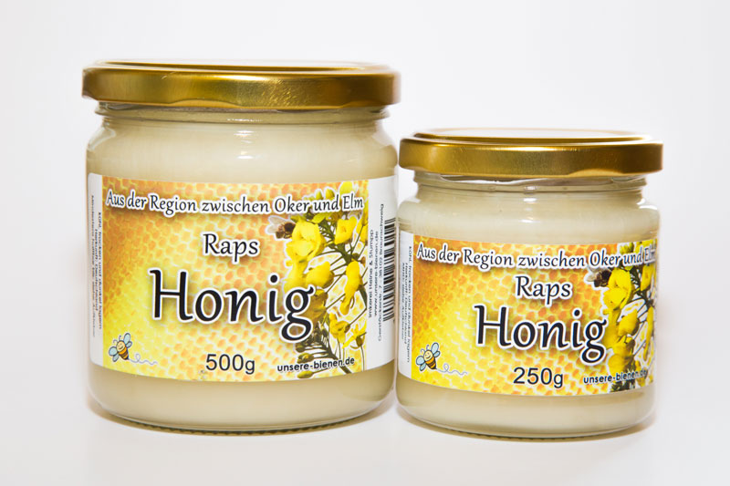Unseren Rapshonig ernten wir an den weit ausgedehnten Rapsfeldern des südlichen Elms und auf unserem Bienenstand in Königslutter.